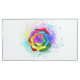 Large, blooming rose with rainbow petals on white background, painted over with splashes of colourful, bright paint. 3d