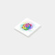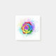 Large, blooming rose with rainbow petals on white background, painted over with splashes of colourful, bright paint. 3d
