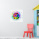 Large, blooming rose with rainbow petals on white background, painted over with splashes of colourful, bright paint. 3d