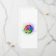 Large, blooming rose with rainbow petals on white background, painted over with splashes of colourful, bright paint. 3d