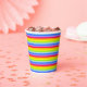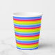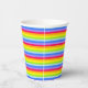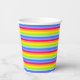 Bright red, orange, yellow, green, blue, royal blue and purple rainbow horizontal striped party paper cups. Other matching gifts and party items available. Designed by www.mylittleeden.com