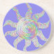 The rainbow sun is made out of different sized sphere's. The background colour is a dark periwinkle.