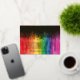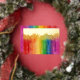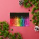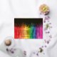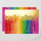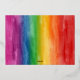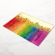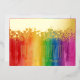 Personalise this card. A decorative glitzy scatter border pattern in gold, silver, or rose gold foil on a colourful printed design of rainbow stripes in a watercolor style.