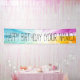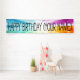 Wide horizontal banner with name of the birthday guest of honour. Rainbow of colourful bokeh and rays of light. Blue, purple, orange, yellow and green graphic. Add your name to this personalised birthday themed banner sign. Great for a birthday party, any age, for kids or adults. Make it now and order with no minimum. Great to tell guests where the party is at, and direct them to the correct location. Easy to customise it online.