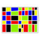 A colourful hard edged geometric abstract design, a little reminiscent of Mondrain perhaps, although different. Ideal for many different occasions. Can also be customised by adding text or letters to the coloured shapes.