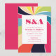 Retro art colourful abstract groovy rainbow swirl personalised wedding invitation. Pink blue yellow colour palette. This card is easily editable. If you need help with the customisation of this product or you need more matching products for this collection kindly message me via Zazzle.