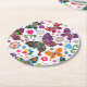 Colourful Retro Butterflies And Flowers Pattern Round Paper Coaster