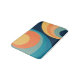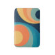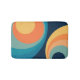 Abstract illustration of colourful retro style circles in yellow, blue, orange and turquoise colours on navy blue background