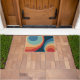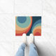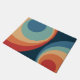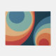 Abstract illustration of colourful retro style circlesbeige, pastel orange, orange and turquoise colours on navy blue background.