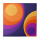 Abstract illustration of colourful retro style circles in purple, blue, yellow and orange colours on dark blue background for everybody who likes retro style colour palette and designs.