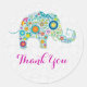 Colourful Retro Floral Elephant & White Damasks Classic Round Sticker