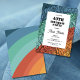 Colourful groovy rainbow with floral pattern backdrop birthday invitations.