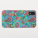 Cool retro colourful paisley pattern. Blue-green with red and yellow accents.