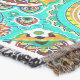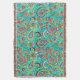 Cool retro colourful paisley pattern. Blue-green with red and white accents.