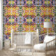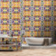 Peel And Stick Vinyl Wallpaper home decor accessory, wall art, wall cover and wall treatment product printed with a Colourful Retro Psychedelic Kaleidoscope Abstract art design four part mirrored image repeating pattern graphic artistic illustration by TheFabricSeal print on demand shop at Zazzle.com #ZazzleMade ©️Original. https://www.zazzle.com/store/thefabricseal