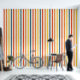 Retro striped wallpaper featuring colourful vertical stripes.
