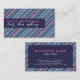 Cool retro colourful diagonal stripes glitter pattern business card template. Blue-green and purple tones.