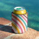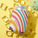 Abstract retro style illustration of colourful (yellow, blue, orange, purple, pink, beige, turquoise) curves decoration. It is easy to customise it by changing the names/date/text etc.