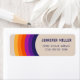 Abstract illustration of retro style rainbow design in yellow, purple, blue, and orange colours on beige background
