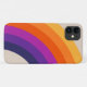 Abstract illustration of retro style rainbow design in yellow, purple, blue, and orange colours on beige background
