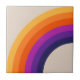 Abstract illustration of retro style rainbow design in yellow, purple, blue, and orange colours on beige background