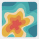 Abstract illustration of colourful retro style swirl design in blue, turquoise, beige, orange, red and mustard colours
