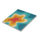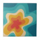 Abstract illustration of colourful retro style swirl design in blue, turquoise, beige, orange, red and mustard colours