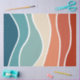 Abstract retro style illustration of colourful (red, blue, orange, navy blue, beige, turquoise) waves decoration on white background. You can add your name/monogram to personalise the item.