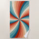 Retro style wavy sun rays geometrical pattern illustration with red, orange, blue and turquoise stripes decoration for everybody who likes playful retro style design and colour palette.