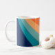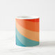 Abstract illustration of colourful (red, orange, blue, turquoise, navy blue) sun rays with curvy geometric stripes decoration
