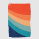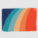 Abstract illustration of colourful (red, orange, blue, turquoise, navy blue) sun rays with curvy geometric stripes decoration