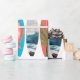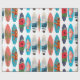 A colourful retro themed surfboard pattern design featuring different types surfboard art. Vintage illustrations of tropical fish, beach, hibiscus flowers and palm trees create an eclectic mix of colourful surfboards. Ideal surfboard design for anyone who loves surfing, the beach, colourful beach themed gifts and décor.