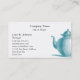 Shaded drawings of matching vintage teapots, or kettles, in blue red and black are featured across the bottom border as a simple pattern. A larger partial image is on the back. Just fill in your customised personal or business corporate information as needed. An extra line is provided on the back, as well as a line for your slogan or advertising wording under the business name. Delete or omit any lines you don't need. Fun and whimsical, yet still professional.