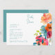 Retro Colourful Watercolor Floral Bridal Shower Invitation. Turquoise Text.