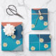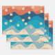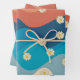 Colourful Retro Waves & Daisies Pattern Wrapping Paper Sheet