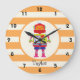 Cool, retro, colourful kid's Colourful Robot on Orange Stripes design on white stripes, striped pattern with vintage feel. Perfect gift for baby, toddler, kids, children, teens, or adults! Personalised the design by adding a child's name or custom text. Visit our store, Birthday Party House, for more great customisable boy and girl products!