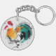 Colourful Rooster. Calligraphy and watercolor. Key Ring