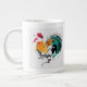 Colourful Rooster. Calligraphy and watercolor. Large Coffee Mug