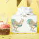 Colourful rooster illustration inspired by vintage colours used in a pattern on wrapping paper.