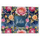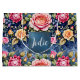 The colours and layering in this pink and gold roses design have a fantastical effect, floating over deepening layers of blue leaves and shadow. For extra delight, tiny sprays of blue and pink single petal posies and leaves are interspersed in the rose garlands. Seamless image. Personalise option layer.