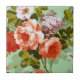 Colourful roses and flowers. Orange and red roses, light green background with white accents.