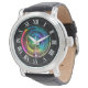 Colourful round maze design wrist watch.
