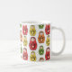 Bright and colourful decorative mugs with Russian dolls pattern.