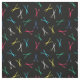 Black fabric with a modern pattern of scissors in strong colours scattered over the dark background. Perfect for barbers, hair dressers, and similar.