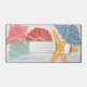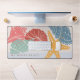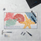 Modern graphic sea shells in red yellow green and blue in pastel colours desk mat. "my happy place" can be customised.