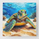 Colourful Sea Turtle Square Wall Clock