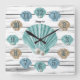 Colourful Seashells and White Weathered Wood Square Wall Clock