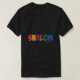 A vibrant and striking design featuring the word Shalom in bright, captivating colours.