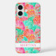 Customise this colourful coral and turquoise watercolor shell iPhone 16 case with your your name in a trendy modern CAP font in pink on white. It's so modern and trendy!
