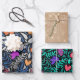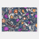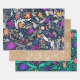 Colourful Silver Floral Leaf Illustration Pattern Wrapping Paper Sheet